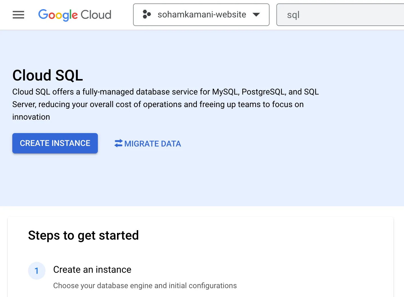 To create a new instance, navigate to the Cloud SQL page on your GCP console.