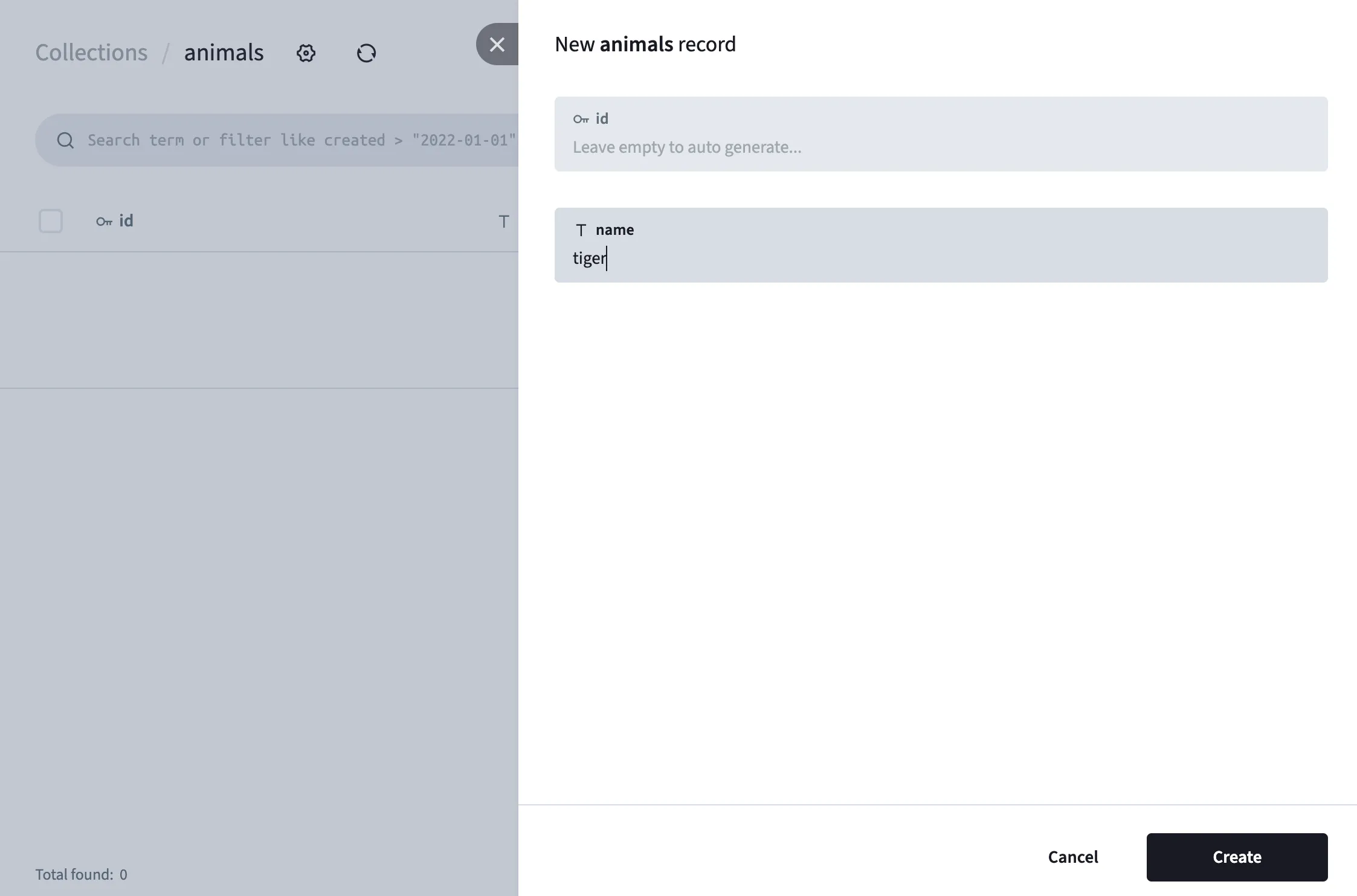- Enter “animals” as the collection name.